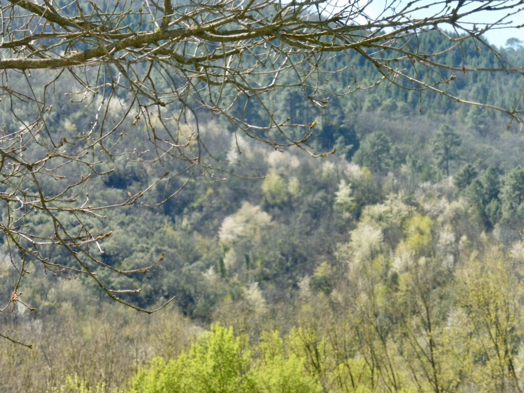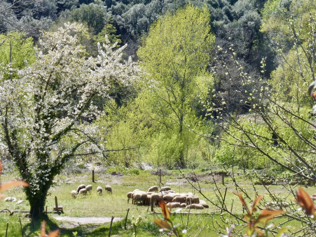 Le printemps battait son plein aux alentours: cerisiers sauvages en pèlerinage au sommet des collines, arbres de Judée en fleur, troupeaux dans de verts pâturages :